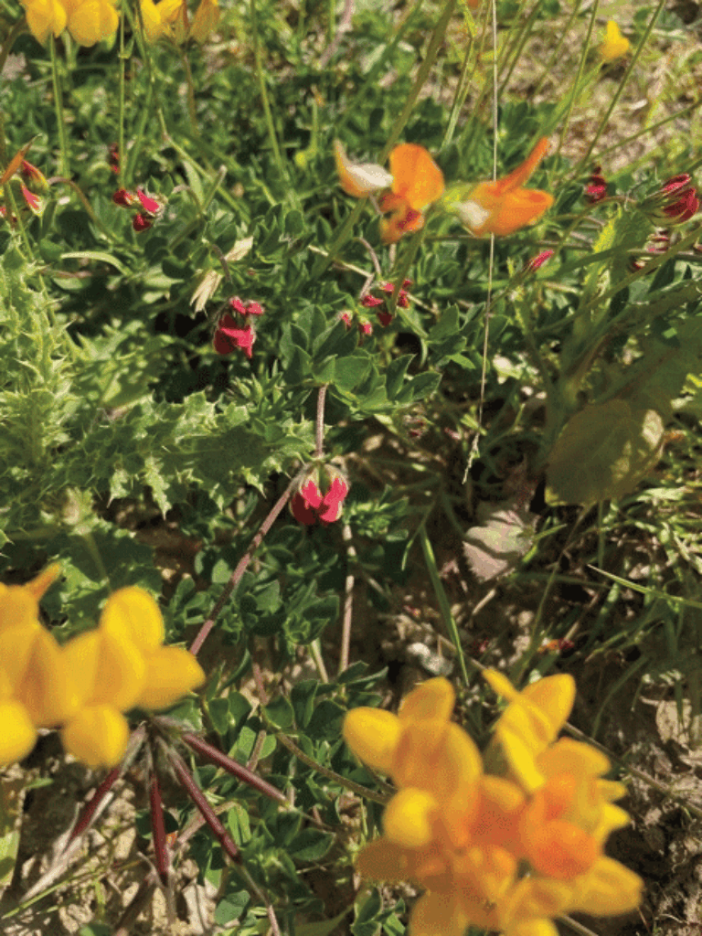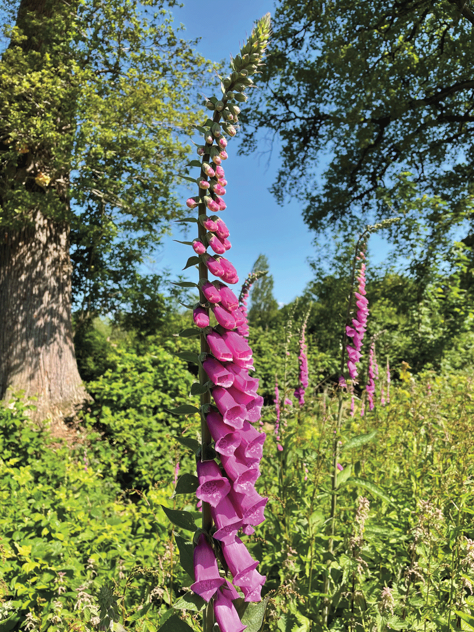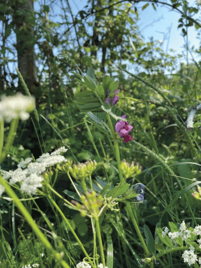 This park has been about 8 years at the planning stage and the first work towards its construction started in September 2021. The brief was to use native trees and plants, to enhance the natural environment and to provide a place for both adults and children to enjoy. It is most fortunate that we have Jeff Wood, an experienced landscape architect to direct the design. I had a wonderful morning recently visiting the park with Jeff. Armed with a large scale map and planting plans, it was a fascinating and exciting experience. Jeff and his family have lived in this area for a very long time – and I think that sensitivity to the existing landscape with its mature trees and understanding of the surroundings has informed and enhanced the plan. There are wonderful old oaks, huge limes which were in flower and smelt delicious during my visit, a poplar with a gigantic mistletoe ball, and whispering pines. The new plantings include varieties of wild roses, and native arbutus unedo for their hips and fruit. There has been substantial planting of osiers – a native willow which used to supply the local trade in basket making.