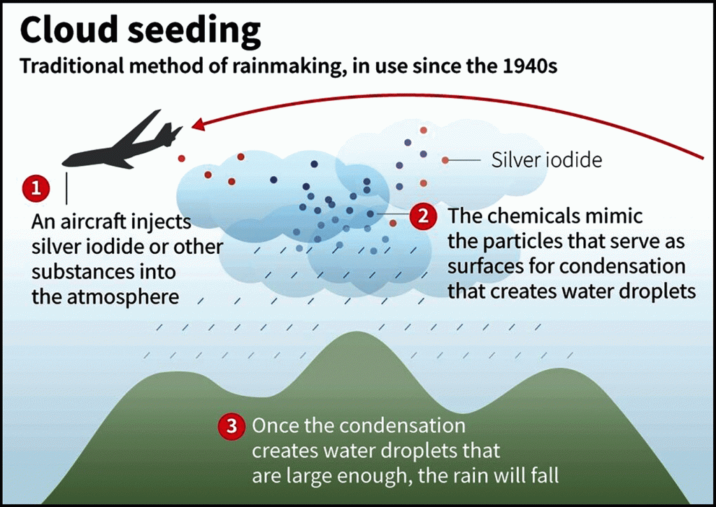 It was a small item in the newspaper recently which reminded me of human weather manipulation. Apparently the Chinese have been working again on ‘cloud seeding’ as a way to engineer more rain for their parched and increasingly unproductive land. This took me right back to the 1970s when ‘cloud seeding’ made big news. Very briefly, two scientists in the USA discovered that if particles were introduced into a cloud, most would act as nuclei and allow moisture to crystallize and then fall as rain. Dry ice produced the best results. The aim of the scientific work was said to increase rain over drought regions, reduce damaging hailstorms, dissipate fog at airports and even redirect hurricanes so that they were less destructive. All good aims but perhaps inevitably the research took a dubious turn. The experiments, centered initially at a meterological institute were moved to the US War department. This was the time of the Vietnam War.