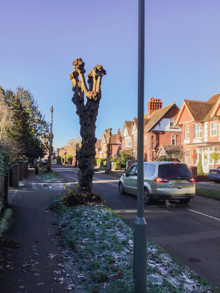 When the part of Cranleigh where I live was initially laid out for housing by Stephen Rowland, beginning in the 1890s, trees were planted to line the new roads, in what was called the Woodlands Estate and included Mead and Mount Road. I do not know if part of the plan right from the beginning, was to pollard the trees regularly to stop them getting too big, which being limes, were bound to.