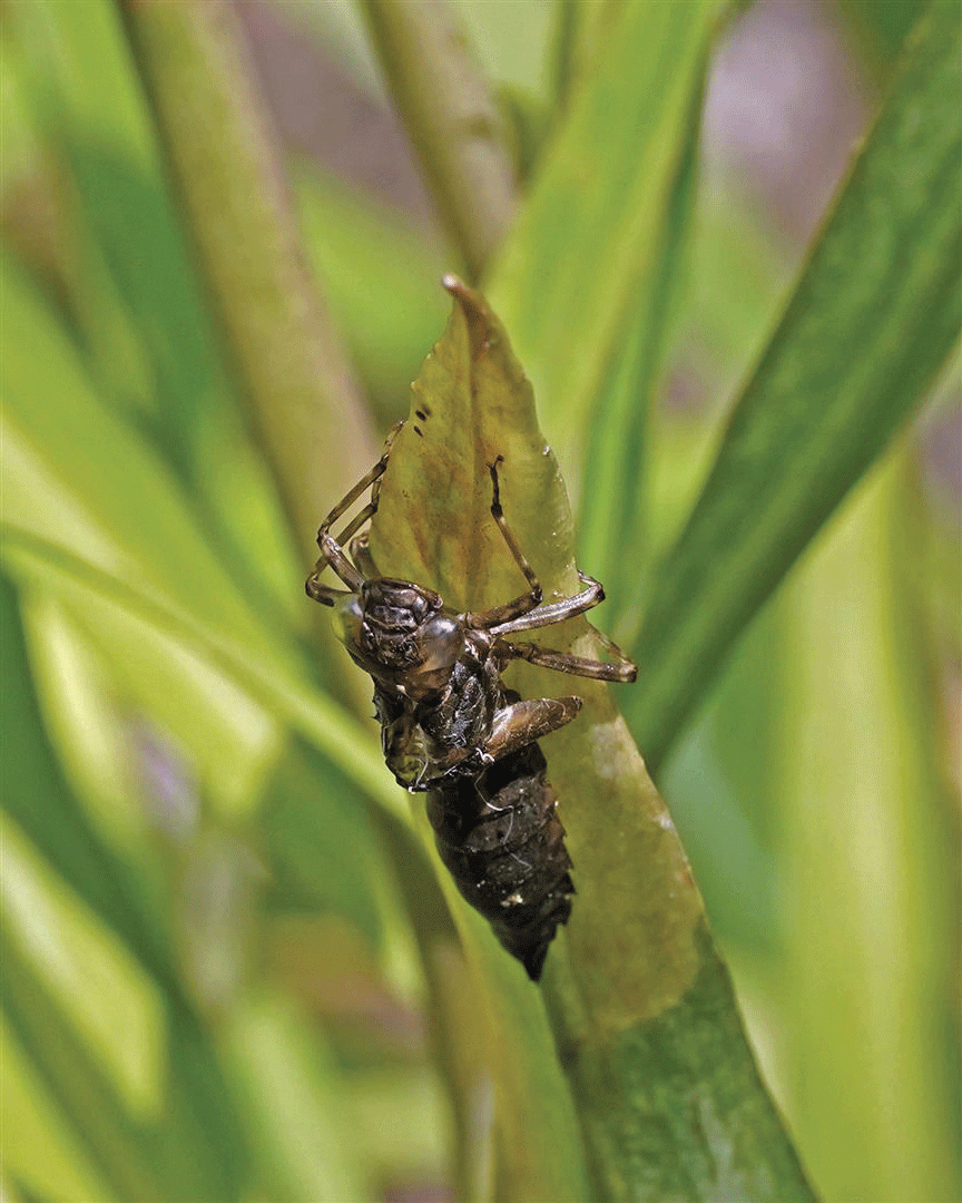 Although my garden pond is small, it has recently been the focus of much interest and excitement. One of Nature’s most amazing sights has been taking place, known as metamorphosis. This is a process whereby a creature changes from one form into a completely different one: e.g. tadpole into frog, or chrysalis into butterfly. We were watching the nymphs of the dragonfly emerge from the water and cling to the stems of the aquatic buttercup. The plants had up to 30 stout brown creatures with large eyes and even larger mandibles. They wait for a sunny day and for the conditions to be right before beginning the process of changing into dragonflies.