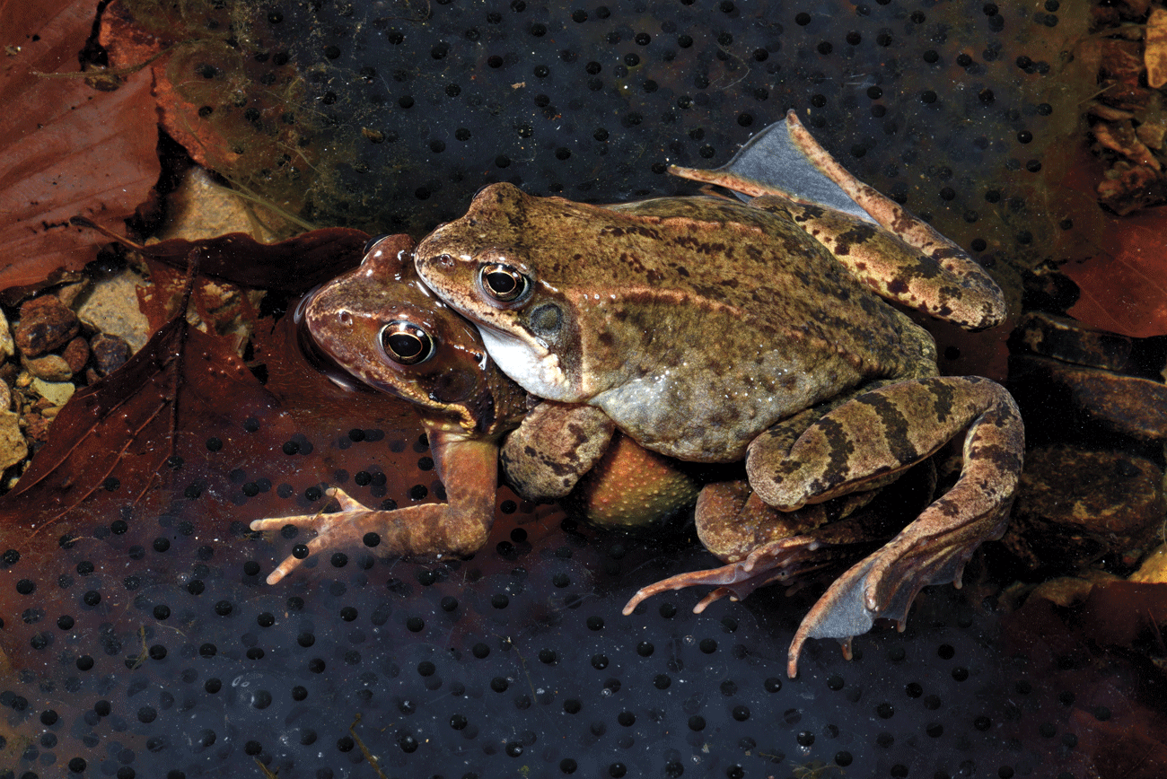I will probably not know for certain if the three frogs in my pond have survived to breed until early next spring. The male will start to croak in the evening and attract a female. They pair up in the water – the male clasping the female with special pads on its forelimbs. Garden ponds are now considered crucial as safe breeding places for amphibians. But not if you have goldfish in your pond as they will eat the tadpoles. I shall have to wait and let the frog/newt balance naturally evolve.